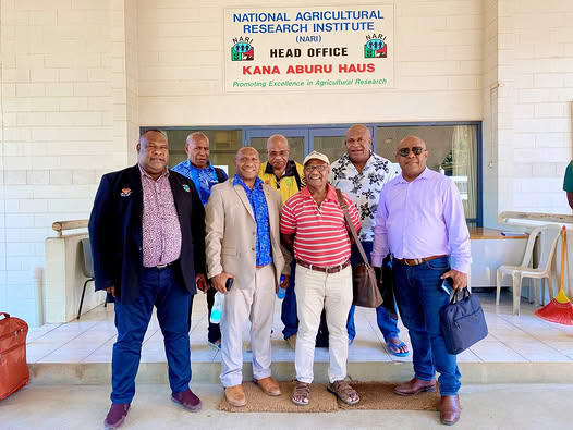PC: Stakeholder reps flanked by Director General Dr. Nelson Simbiken (Left) and LDC Managing Director Terry Koim (Right) at the NARI head office in Lae…